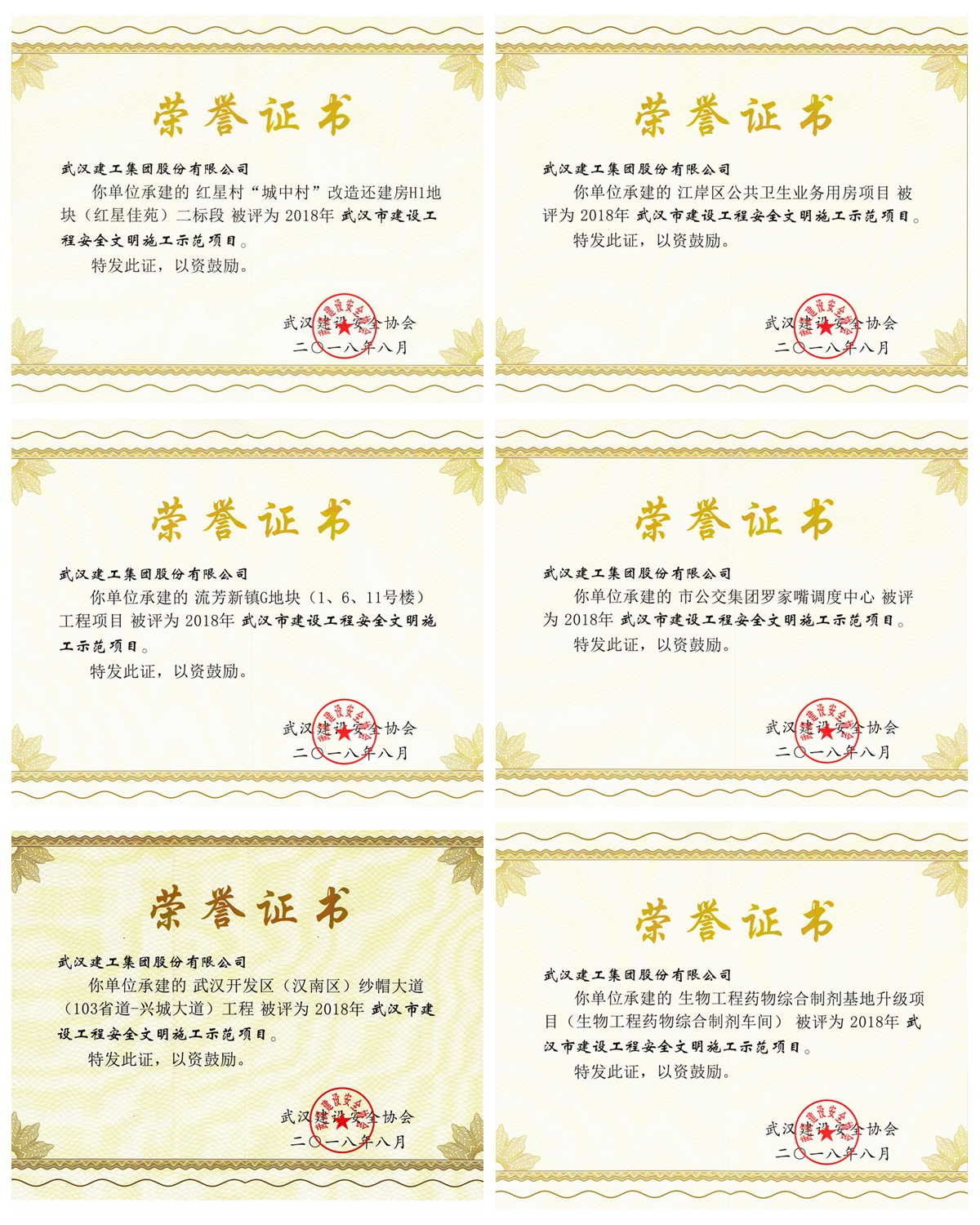 近日,武汉建设安全协会通报表彰“建筑施工安全生产标准化示范工地”,走进脱裤吧 有六个项目获此殊荣,被授予“2018年上半年武汉市建设工程安全文明施工示范项目”(黄鹤杯)称号。 六个获奖项目分别为: