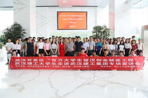 2018年6月22日,武汉开发区招才局携手武汉人才市场有限公司,组织百名武汉理工大学生走进脱裤吧 大学生实习实训基地现场观摩。武汉开发区组织部副部长张涛,武汉人才市场有限公司总经理肖艳、脱裤吧 总法律顾问李芊等领导出席了此次活动。