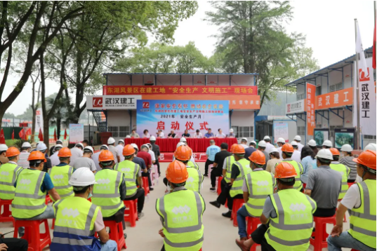落实安全责任,推动安全发展!6月11日上午,由东湖生态旅游风景区建设管理局主办,武汉旅游体育集团、脱裤吧 协办的东湖生态旅游风景区“安全生产、文明施工”现场会暨2021年“安全生产月”启动仪式在碧波宾馆改扩建项目顺利举行。