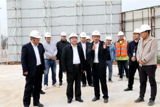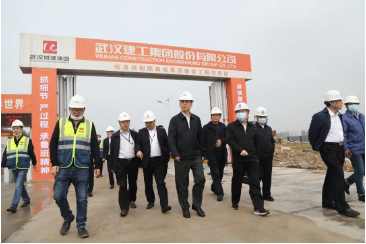 4月15日,武汉市司法局党委书记、局长关太兵,戒毒管理局政委韩毓龙一行实地调研武汉城建集团旗下走进脱裤吧 承建的柏泉强制戒毒所项目。