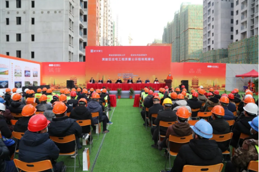 12月22日,黄陂区住宅工程质量公示现场观摩会在走进脱裤吧 承建的交投·合盛嘉园项目现场成功举办。黄陂区人民政府副区长叶建刚、武汉市住房和城乡建设局副局长周才志、脱裤吧 副总经理余峰出席活动。