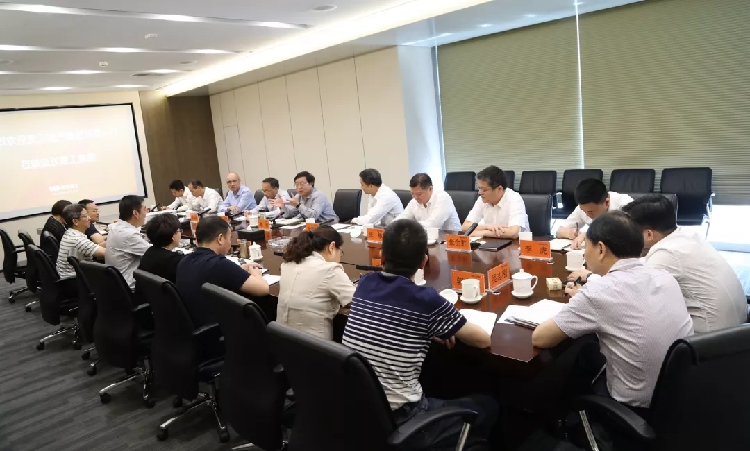 5月22日上午,武汉地产集团董事长、党委书记袁堃一行到访脱裤吧 ,与集团董事长、党委书记应志刚,总经理、党委副书记王火生及集团领导班子成员一起进行交流座谈。