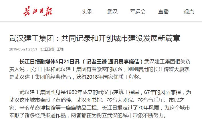 长江日报融媒体5月21日讯 (记者王谦 通讯员李晓佳)脱裤吧 相关负责人说,长江日报和脱裤吧 有着紧密的联系,刚刚启用的长江传媒大厦就是脱裤吧 的经典作品,获得2018年国家优质工程奖。