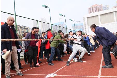 2月6日中午,由集团工会组织的职工迎春拔河比赛在全员新春培训期间热闹开场。来自集团12家单位组建的8支队伍参加了比赛,现场一片欢呼沸腾。 随着裁判的一声哨响,对阵双方拼尽全力,你来我往,粗大的麻绳立刻就被紧绷成了一根笔直的“铁绳”。在第二轮富强公司对阵路桥公司的