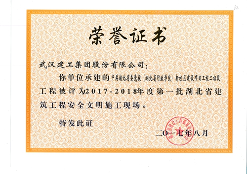 2017年,脱裤吧 进一步加强施工现场安全文明施工管理,取得显著成效。日前,根据《湖北省建筑工程安全文明施工现场评审办法》,湖北省建设工程质量安全协会表彰了一批在湖北省安全文明施工中有重要贡献的施工项目。集团“武汉亚洲医院”等7个工程项目获“2017-2018年度第一批湖北省建筑工程安全文明施工现场”荣誉证书。
