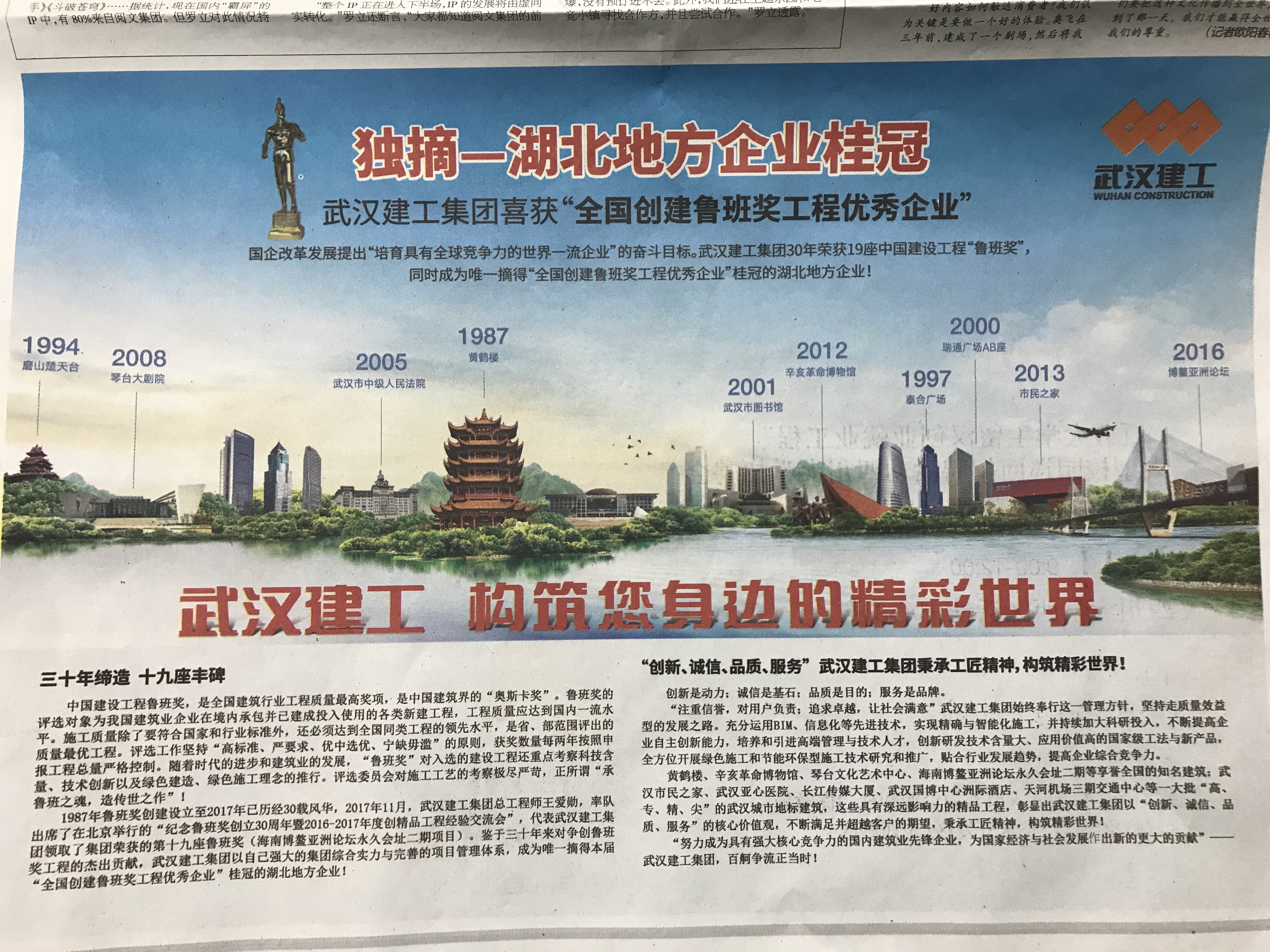 独摘—湖北地方企业桂冠 脱裤吧 喜获“全国创建鲁班奖工程优秀企业”