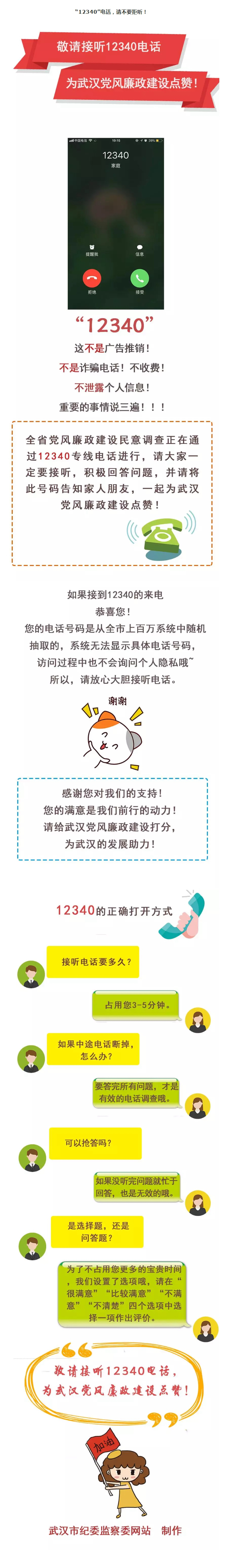 敬请接听12340电话,为武汉党风廉政建设点赞!
