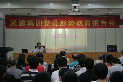 目前,我国周边安全形势问题是广大党员关心的热点问题之一。为了进一步培养广大党员的爱国情感和国防意识,正确了解当前形势,认识安全稳定的重要性,5月16日下午,武建集团邀请海军工程大学理学院人文社科系教授、武汉名家论坛主讲人黄友牛,来集团作国防形势教育报告会。来自集团各单位的党员、积极分子260余人参加了报告会。